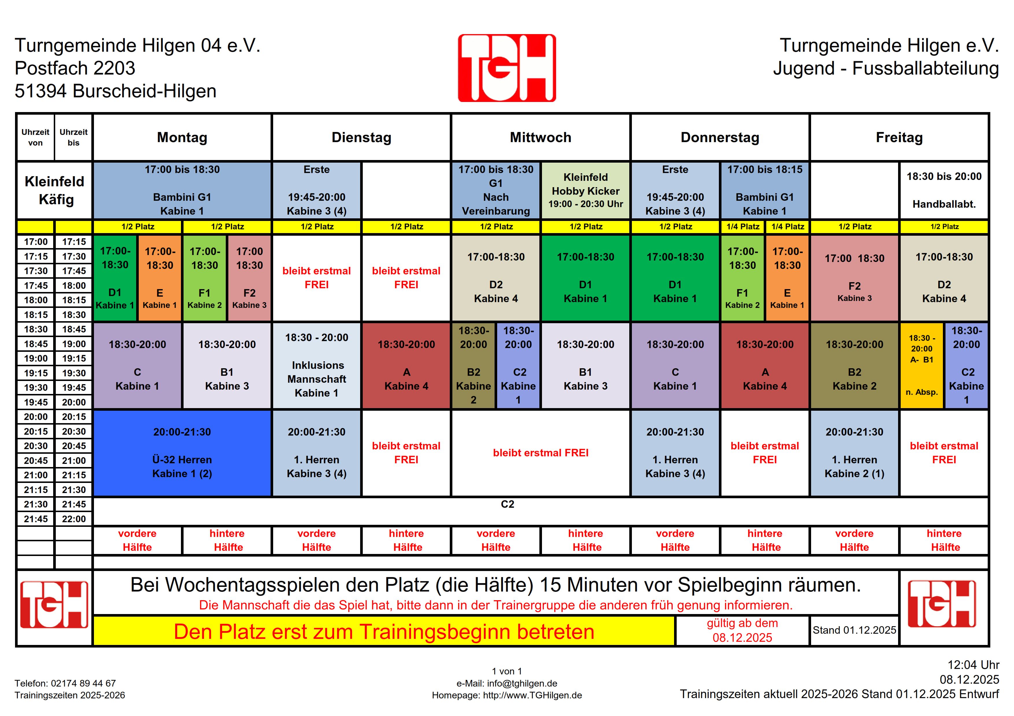 Hier die aktuellen Trainingszeiten der Saison 2025/2026: